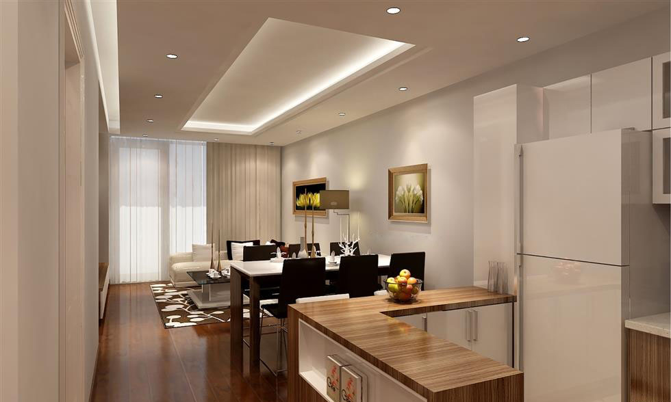Điểm nhấn nổi bật của phòng khách chính là bức vách gỗ sau tivi và bộ sofa hình chữ L màu trắng đặt trên lớp thảm trang trí sang trọng. Những vật dụng dùng để trang trí như tranh treo tường, đèn LED, đèn trang trí, đồ trưng bày cũng được tính toán đặt ở những vị trí phù hợp để góp phần khiến cho không gian tiếp khách có thêm sức sống. Do căn hộ này không có ban công hướng ra ngoài nên cửa sổ tại phòng khách cũng được thiết kế sát trần để đảm bảo cung cấp ánh sáng cho khu vực sinh hoạt chính này. Hệ thống đèn trong căn phòng này sử dụng những cụm đèn âm trần nhỏ, đủ để thích hợp cho việc xem phim. Ngoài ra, trong phòng khách còn có hệ thống kệ ti vi, kệ trang trí để trưng bày những đồ có tính nghệ thuật cao. Chỉ cần thiet ke noi that đơn giản cũng đã đủ biến căn phòng này trở thành nơi để gia chủ thư giãn và tận hưởng cuộc sống sau những giờ làm việc đầy mệt mỏi.