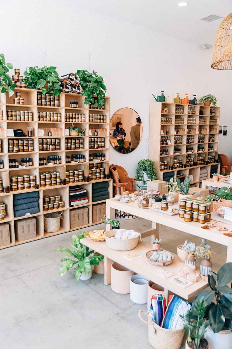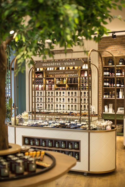 Mẫu thiết kế nội thất cửa hàng thực phẩm với chất liệu gỗ làm chủ đạo tạo cảm giác gần gũi với thiên nhiên