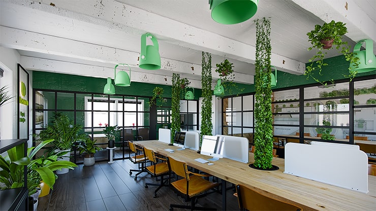 Xu hướng thiết kế nội thất văn phòng hiện nay là đơn giản, hiện đại, sang trọng và đưa thiên nhiên vào trong văn phòng làm việc làm tối ưu không gian, tạo ra các khoảng làm việc chung có nhiều cây xanh. Cây xanh có tác động rất tích cực tới sức khỏe tâm sinh lý của nhân viên làm tăng khả năng sáng tạo trong công việc, đồng thời tạo ra phong thủy tốt giúp doanh nghiệp phát triển.